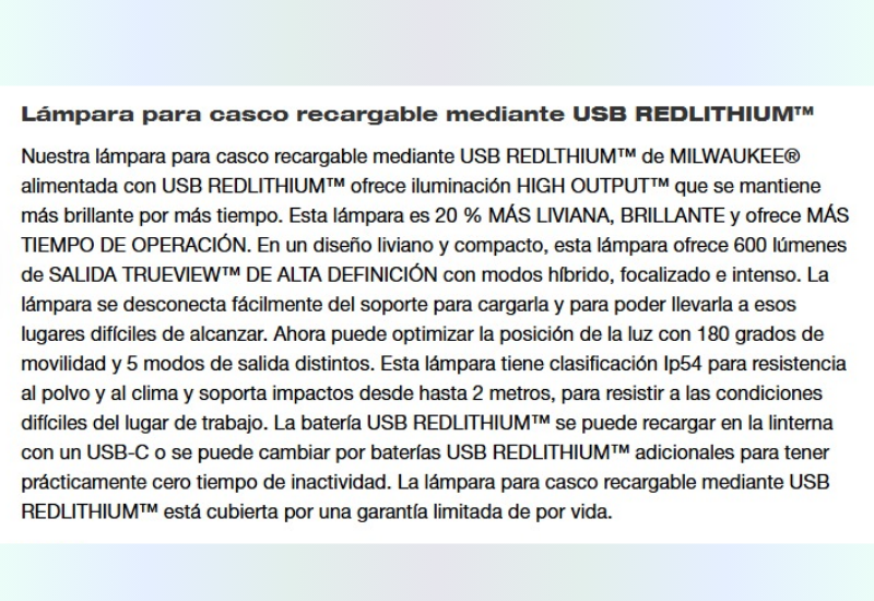 Nuestra lámpara para casco recargable mediante USB es liviana, brillante y ofrece más tiempo de operación. La lámpara se desconecta fácilmente del soporte para cargarla y para poder llevarla a esos lugares difíciles de alcanzar. Ahora puede optimizar la posición de la luz con 180 grados de movilidad y 5 modos de salida distintos. Esta lámpara tiene clasificación Ip54 para resistencia al polvo y al clima y soporta impactos desde hasta 2 metros, para resistir a las condiciones difíciles del lugar de trabajo.